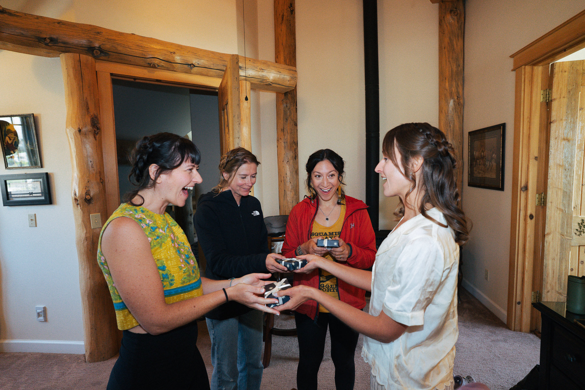Natalie and Johnny’s wedding at The Hideout was special. Not just special because of The Hideout’s immense beauty and privacy, but special because Natalie and Johnny’s undeniable love ignited a spark that spread through the friends and family like wildfire. Starting with a rehearsal dinner party that went late into the night and ending with post-wedding breakfast burritos, the whole thing was one big beautiful blur- a blur filled with manic weather, extreme athletes, breakdancing, canoeing, and camping, and most importantly, lots of love.Â